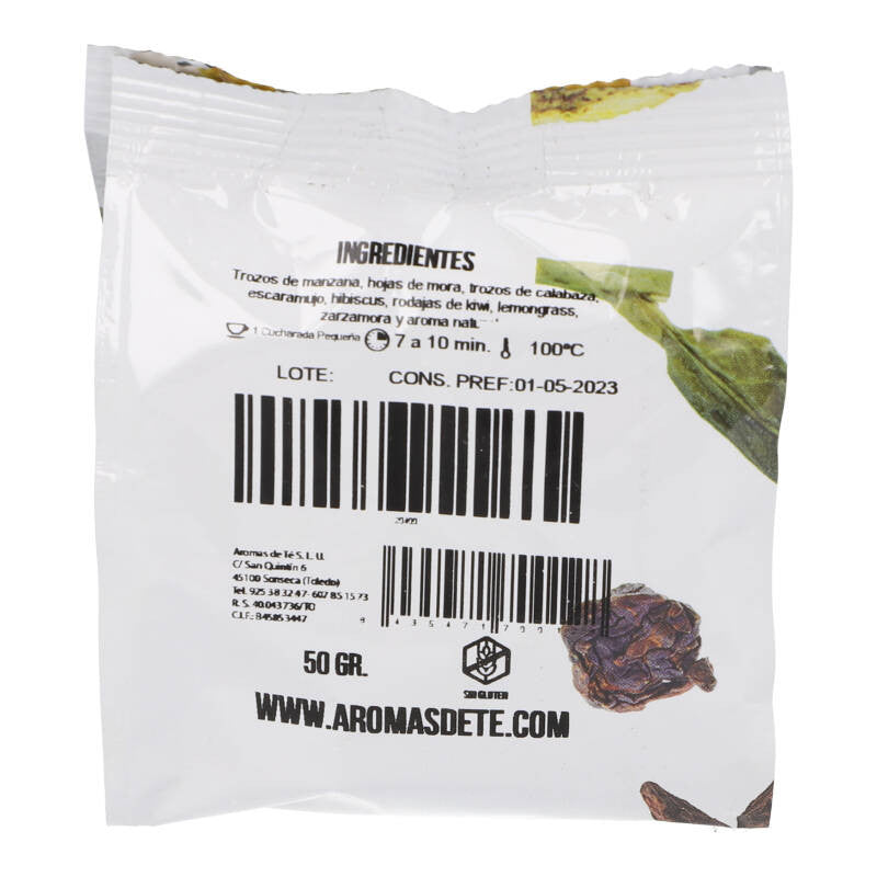 | Ingredientes | Apple pieces, blackberry leaves, pumpkin pieces, rose hips, hibiscus, kiwi slices, lemongrass, blackberry, natural flavor |
