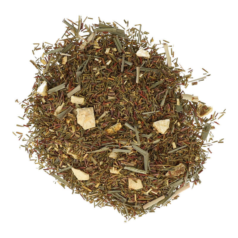 Rooibos verde: a diferencia del anterior, este no ha pasado por un proceso de oxidación, por lo que conserva su color de origen, el verde. Normalmente se emplea para mezclarlo con otras otras hierbas, pero en Aromas de Té también lo vendemos, de cultivo ecológico, sin ningún tipo de mezclas. El sabor es similar al del té verde, pero, por supuesto, sin teína.