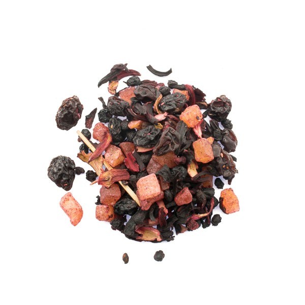 | Ingredientes | Hibisco, pasa de corinto, frambuesa liofilizada, cubos de papaya ( papaya, azúcar), bayas de saúco, fresa liofilizada, grosella negra, arándanos y aroma. |