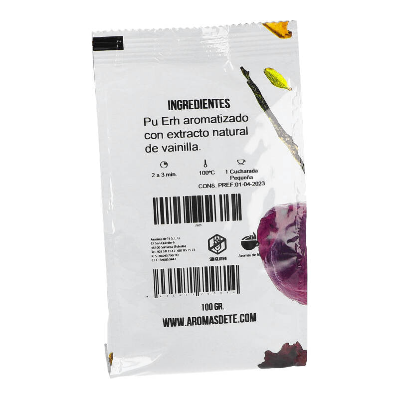 | Ingredientes | Pu Erh aromatizzato con estratto naturale di vaniglia. |