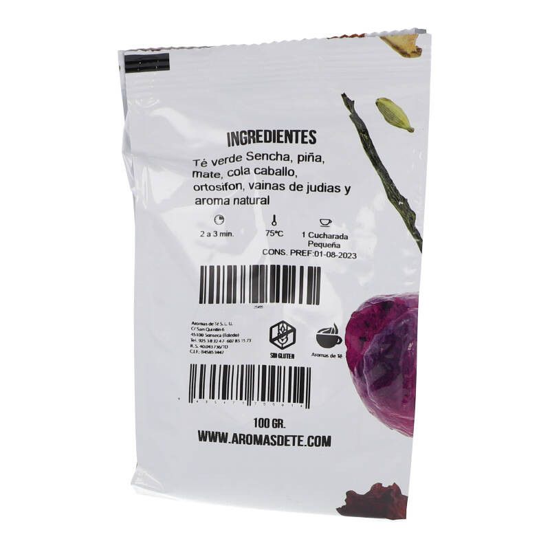 | Ingredientes | Tè verde Sencha, ananas, mate, equiseto, orthosiphon, baccelli di fagioli e aroma naturale. |