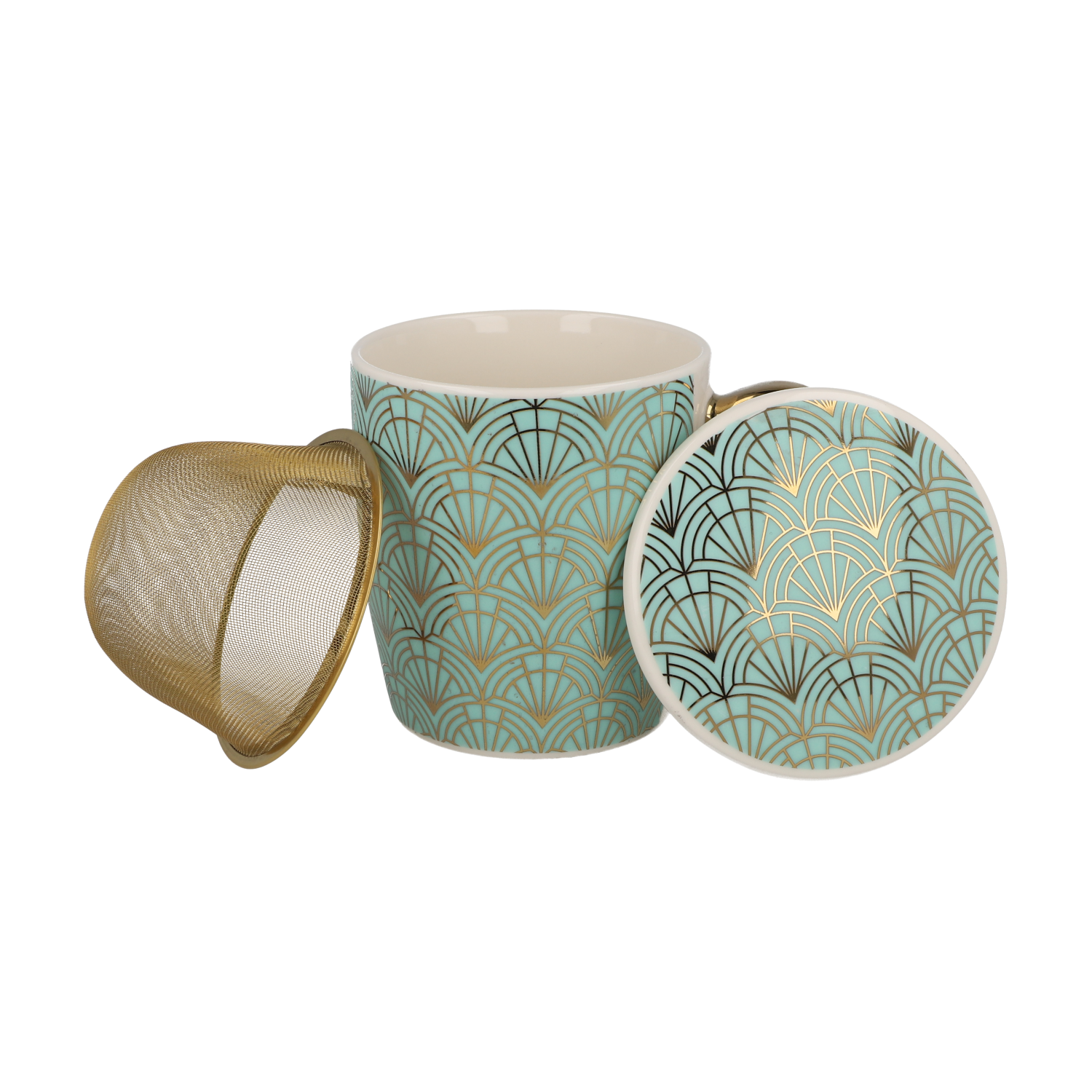La Tisanera Art Déco es una pieza exclusiva que combina estilo, funcionalidad y sofisticación. Inspirada en el icónico movimiento Art Déco, su diseño geométrico en tonos verdes y dorados aporta un aire de lujo y distinción a cada momento de té o infusión.